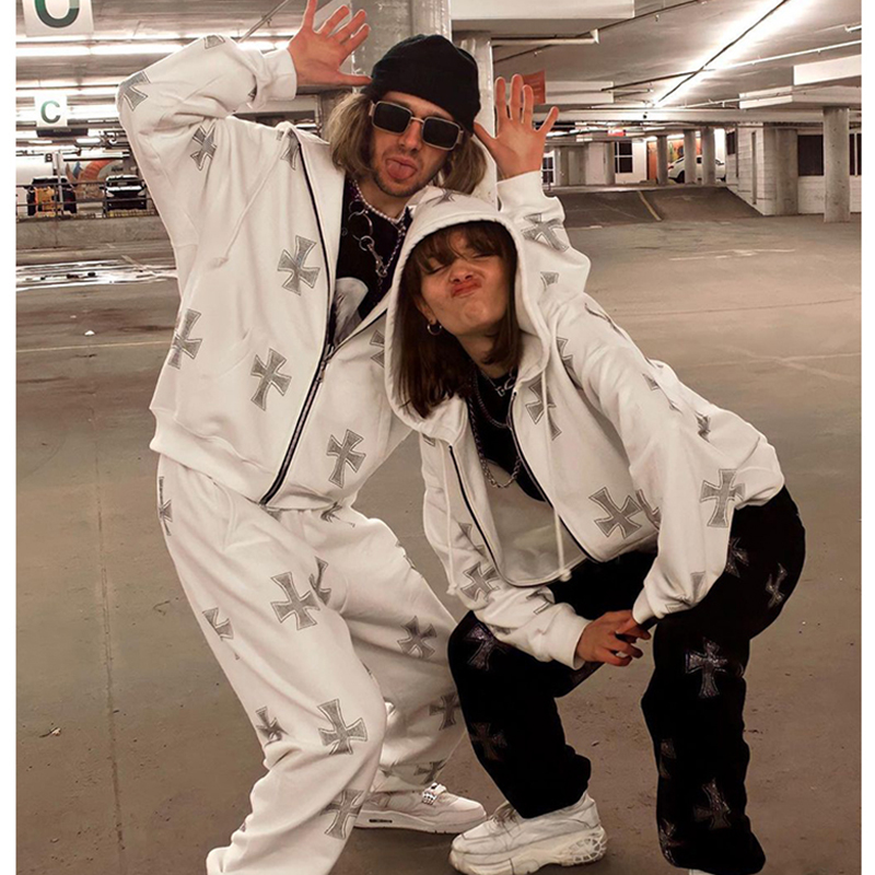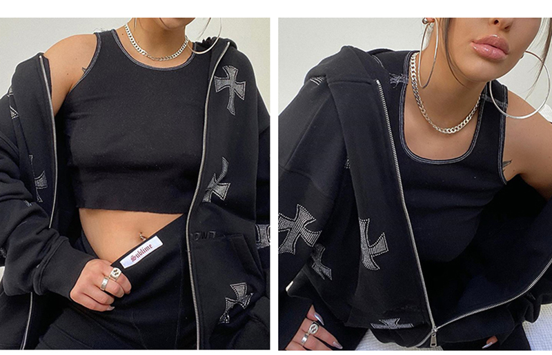 High Street Retro American Rhinestone Hot Rhinestone Cross Jacket