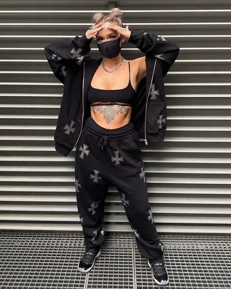 • High Street Retro American Rhinestone Hot Rhinestone Cross Jacket